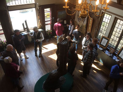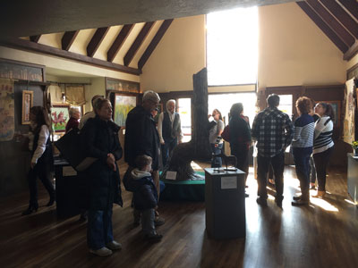 The 17th annual 2017 Art Show at The Grove, Glenview, IL: Guests viewing the most recent documentary on the artist's ongoing study of the Trail Marker Trees by Producer and Director Gary Donatelli