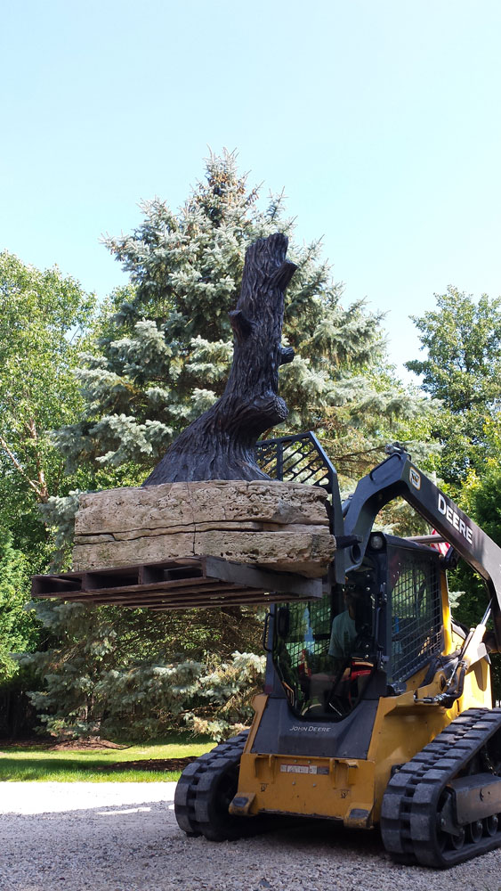 5ft Trail Marker Tree bronze sculpture arriving at the Redwing Estate site.