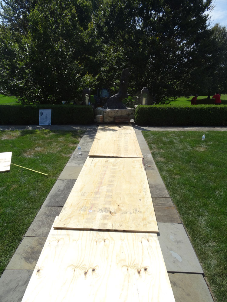 Mounting the bronze: Mounting the 5' bronze sculpture onto its Chilton limestone base.