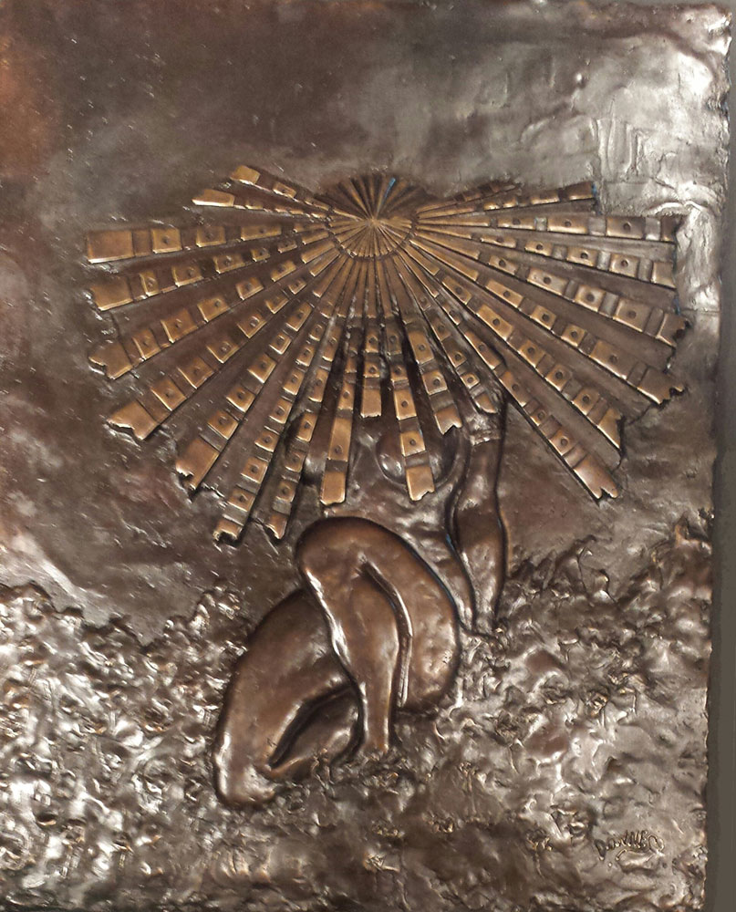 Bronze High Relief Sculpture: "Morning Flower" based on one of the artists award winning paintings sold opening night at the 17th annual 2017 Art Show at The Grove, Glenview, IL.