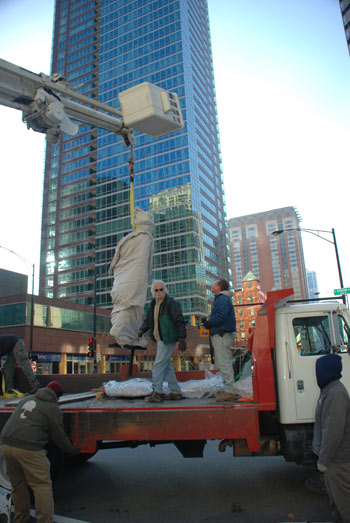 Installation day, the artist and Brian Buchholz had just arrived and with the help of a